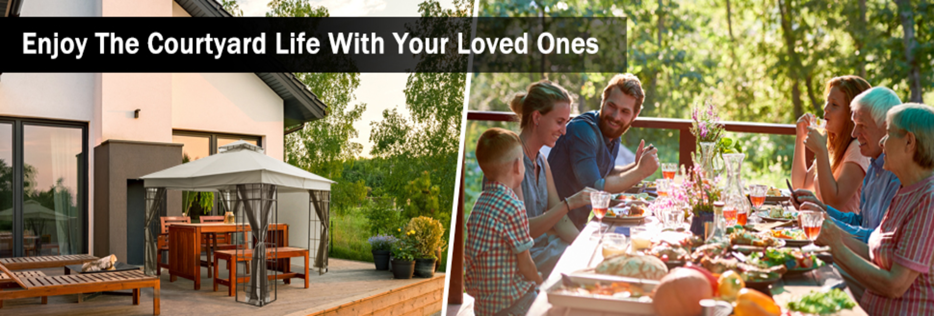 Warmally 10'x10' Gazebo Patios Double Roof Canopy with Mosquito Netting for Shade and Rain Garden Party Camping Outdoor Cream